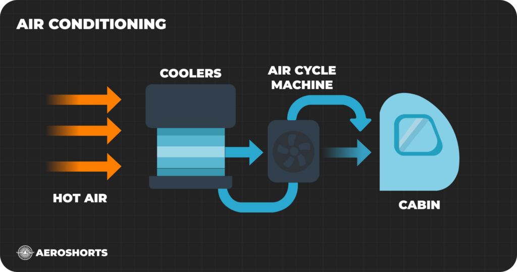The air taken from the engine is far too hot to use directly. It first passes through coolers and an air cycle machine. These systems cool, regulate and mix the air before it enters the cabin. Thanks to this process, passengers enjoy stable pressure, fresh air and a comfortable temperature throughout the flight.